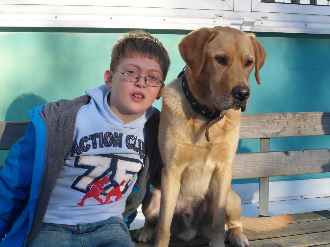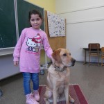 Wenn die Kinder Wahrnehmungsförderung betreiben, wird häufig an mir etwas verändert, was dann ein Kind erraten muss. Neulich haben sie kleine Labradore aus Gips angemalt und die Feinmotorik geschult (s. Foto). Ich hab dem Kleinen erst mal den Kopf geleckt. Zur Sprachförderung gibt es nun auch eine Handpuppe, die mir ähnlich sieht (s. Foto). Nicht zu vergessen der große Plüsch-Klassenhund „Balou“ (s. Foto mit L.), der jeden Freitag ausgelost wird mit seinem Wochenendtagebuch und dann bei einem Kind schlafen, spielen, wohnen darf bis Montags, gebürstst, gefüttert und bespaßt wird. Alles wird im Hundetagebuch meines Stoffkumpels genau von den Schülern dokumentiert, d.h. beschrieben und gemalt .